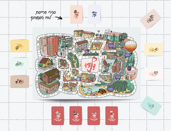 1 לוח משחק | 1 קוביה | 4 כלי משחק